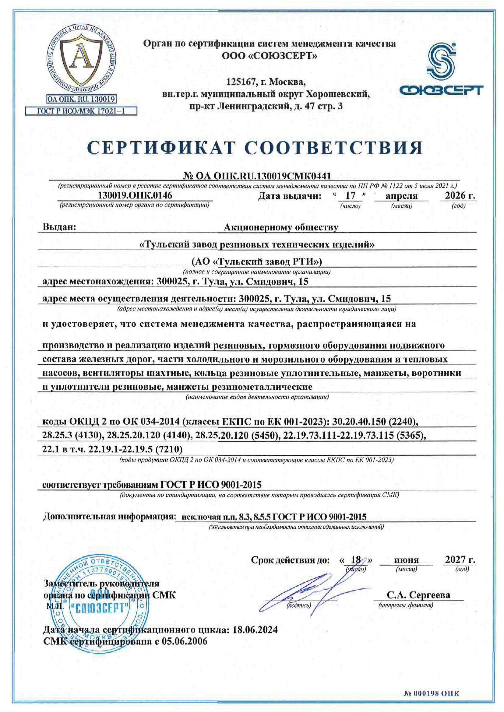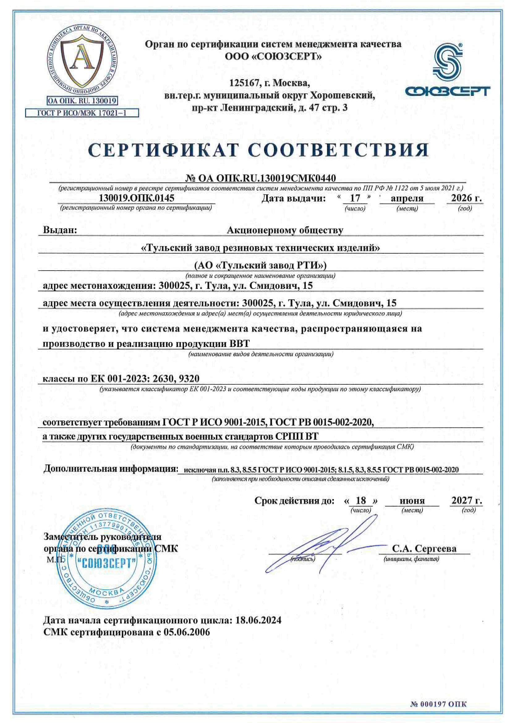 Тульский завод РТИ - одно из ряда ведущих предприятий Российской Федерации, изготавливающих резинотехнические изделия.